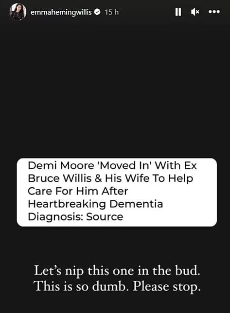 Y es que según el medio mencionado, el representante de la protagonista de películas como ‘Ghost’ apuntó que Moore quería cuidar de Willis hasta el último momento, por lo que trabajaría de la mano con la actual pareja del actor. Sin embargo, es ahora que Emma rompió el silencio y a través de sus redes sociales respondió con un contundente mensaje para desmentir que esto pasó.