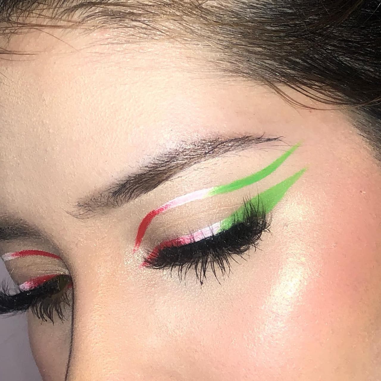 1.- Saca tu lado más creativo con delineadores verde, blanco y rojo