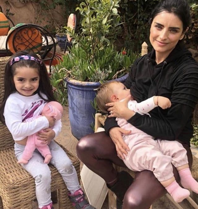 El pasado miércoles 31 de julio, Derbez despertó debate en sus redes sociales cuando compartió una foto en la que aparece amamantando a su bebé de un año y medio, mientras su pequeña hermana Aitana, de cuatro años, imitaba a su hermana mayor y “daba pecho” a una muñeca.