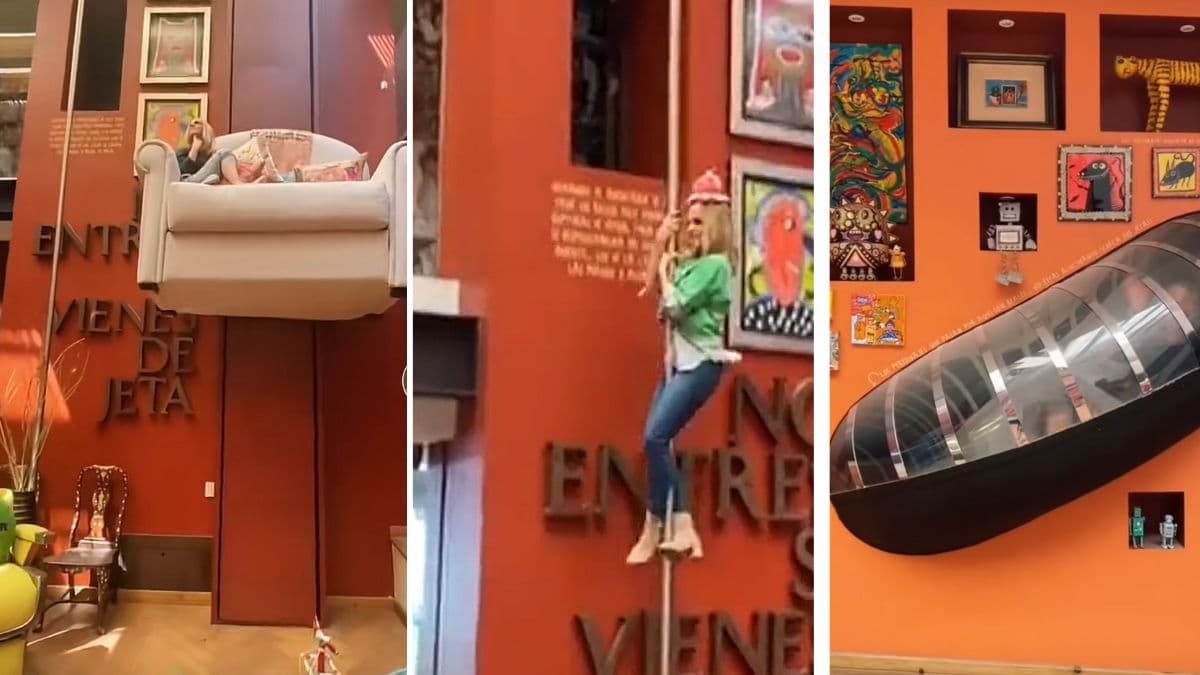 Además de contar con una habitación especial para su colección de muñecas, la creadora de Distroller, famosa por la frase "Virgencita, plis", también diseñó interesantes maneras de trasladarse en su casa. En el video se puede ver desde un tobogan, hasta un tubo para bajar un piso, al estilo de estación de bomberos.