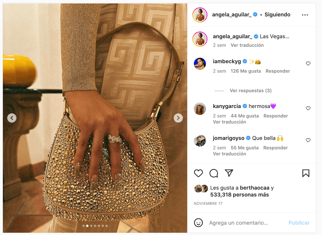 Sin embargo, recientemente la cantante apareció con un bolso que causó furor en las redes sociales. Se trata de un accesorio de la marca Prada con un valor de alrededor de 100 mil pesos mexicanos (aunque en algunas tiendas está entre 86 y 90 mil pesos).
