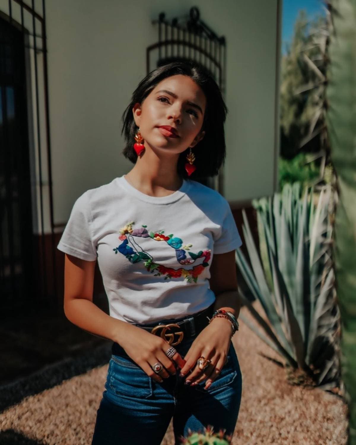 La joven de 17 años ha logrado imponer un estilo propio con el cual combina algunas de las tendencias más populares que los jóvenes de su generación disfrutan, desde el corte bob, muy al estilo Dua Lipa, hasta prendas como crop-tops o croséts combinados con jeans; Ángela poco a poco domina mezclar estos trends con influencias de la la moda mexicana tradicional.