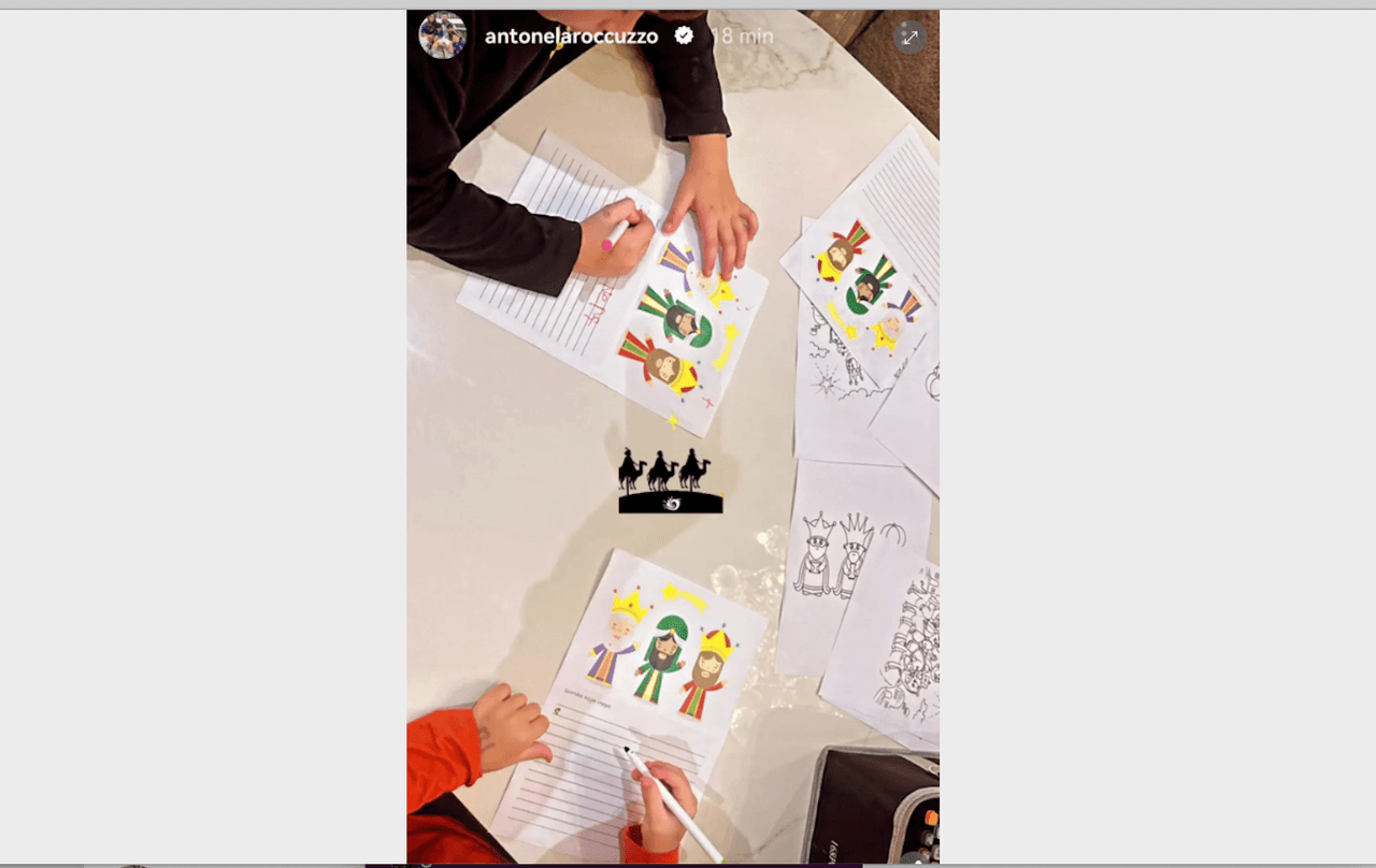 La esposa de Lionel Messi publicó en sus redes que sus hijos, Thaigo, Mateo y Ciro, escribireron su tradicional carta a los Reyes Magos en tiernas hojas de papel estampadas.