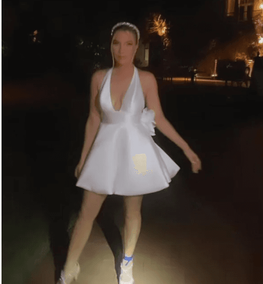 El tercer y último look nupcial que lució Lele refirió a un minivestido satinado, también en color blanco, que destacó por su escote en V y el hermoso detalle en la espalda. Este vestido se lo puso cuando la fiesta ya iba más avanzada, de modo que pudo disfrutar la fiesta estando mucho más cómoda. Este modelo fue de la diseñadora israelí Pnina Tornai.