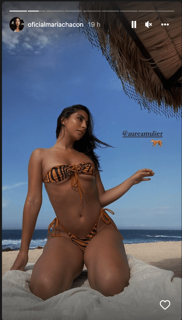 La actriz reveló a través de historias en Instagram que, cuando no está filmando escenas, disfruta de las mañanas pasando un buen rato en la playa. A través de sus redes sociales, María compartió una imagen en la que dejó ver un bronceado perfecto, el cual lució con un diminuto bikini.