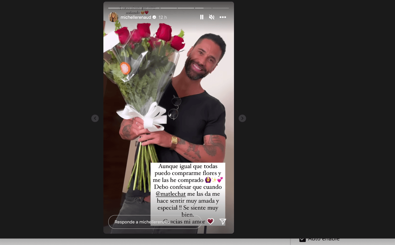 Hace unas horas, de hecho, Michelle compartió una imagen que derritió a todos sus fans, en la que se puede ver a Matías Novoa, su actual novio, sostener un ramo de rosas rojas con una sonrisa de oreja a oreja .