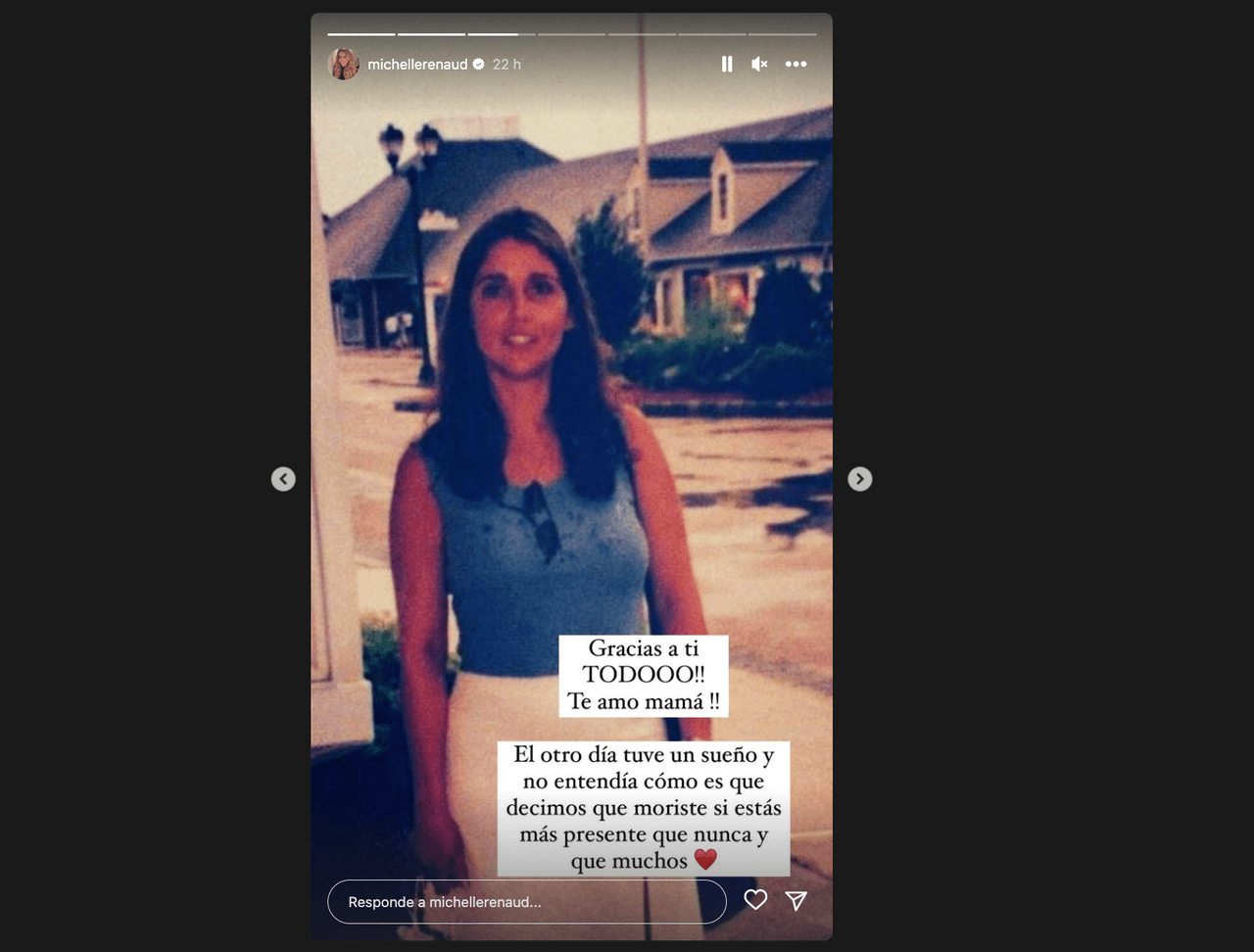 Michelle aprovechó para enviar todo el amor a su mamá en este día, al tiempo que explicó que aunque ya tiene tiempo que Laura falleció, ella la siente más presente que nunca, siendo que incluso hace poco soñó con ella. El pequeño Marcelo, hijo de Michelle, lamentablemente no conoció a su hermosa abuela, pero sin duda podrá ser testigo de su imagen y legado a través de su famosa mamá.