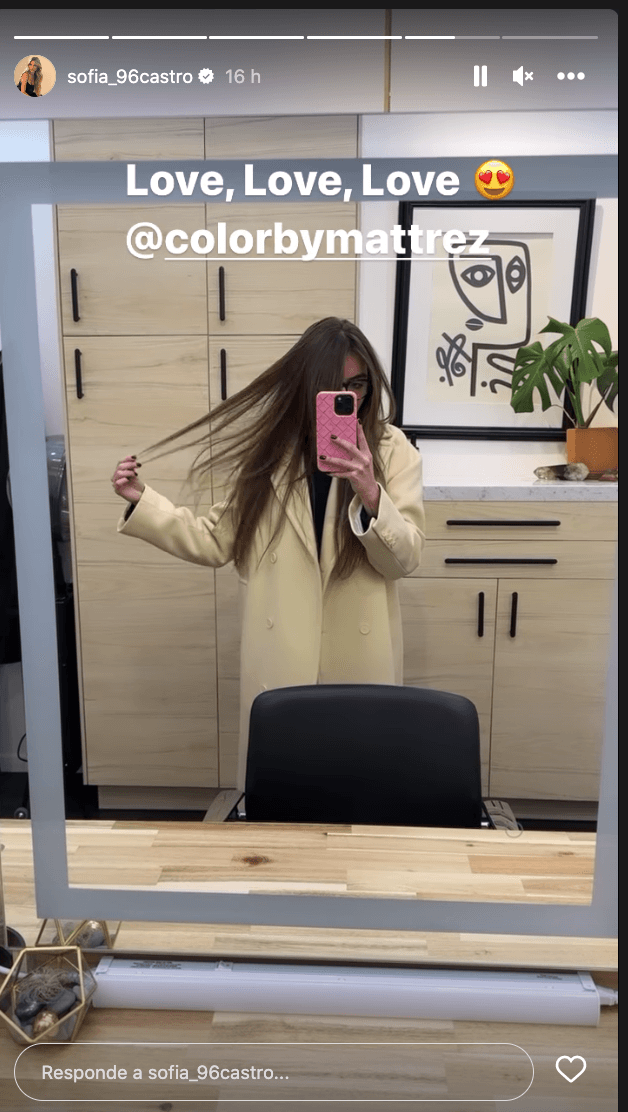 Según mostró en sus historias de Instagram, la joven de 26 años regresó de viaje y, en cuanto llegó a su destino, fue corriendo a que transformaran su cabello. Sofía eligió teñirse de castaño oscuro, uno de los tonos que estarán en tendencia esta primavera 2023.