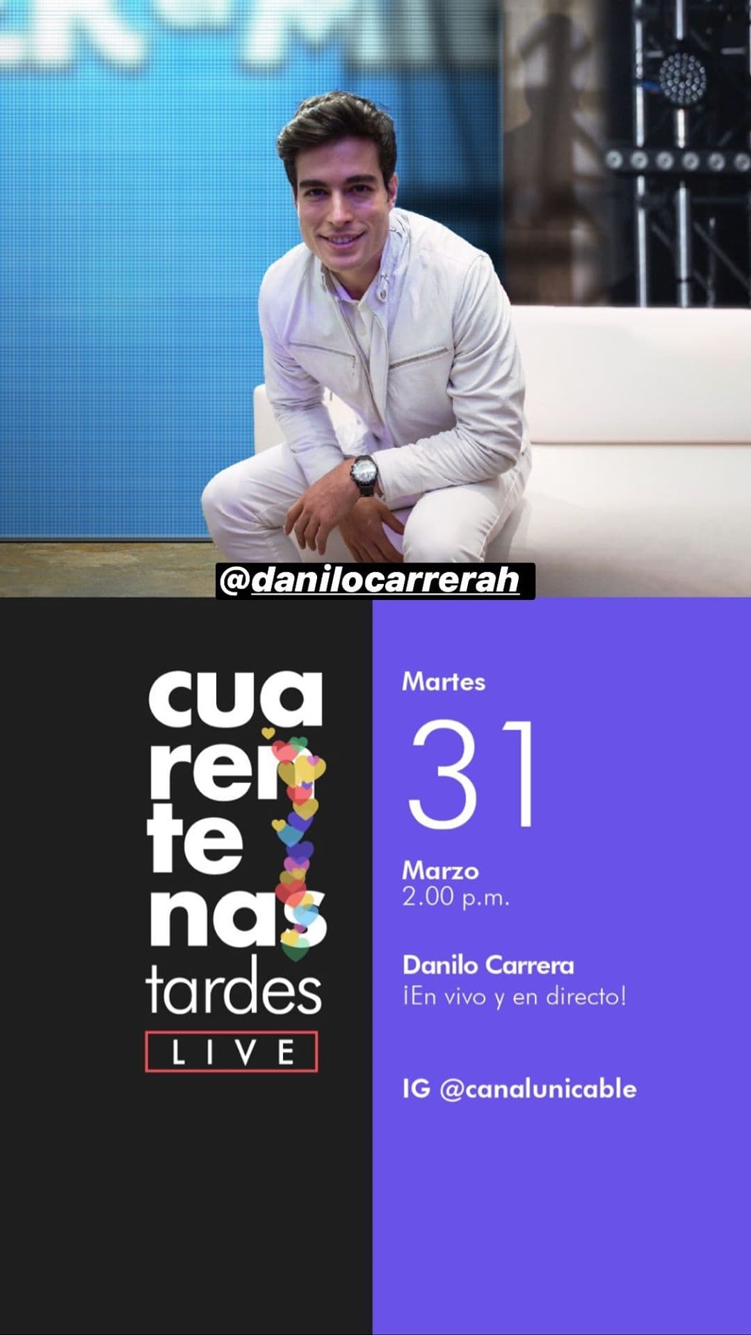 Se trata de una serie de lives a través de Instagram. Hoy es el turno de Danilo Carrera, actor mejor conocido por su aparición en telenovelas como ‘ Hijas de la Luna’ y recientemente en ‘ Vencer el miedo’, que protagonizó junto a Paulina Goto.