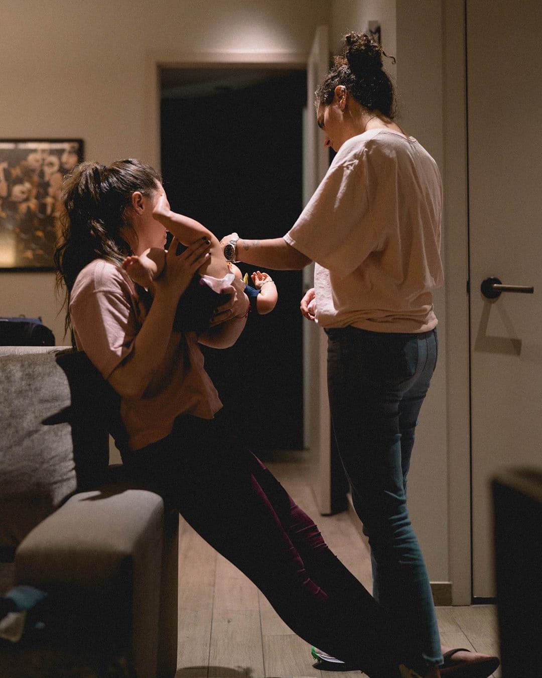 En dicha imagen, aparecen ambas madres cargando a la pequeña Noah, mientras se lee el texto escrito por la mexicana: "Hace una semanas tomamos esta foto y nunca imaginé que tan solo días después tendríamos que estar en casa de forma indefinida, pero la salud y la vida de los que amamos vale más que todo. Mi gente en México".