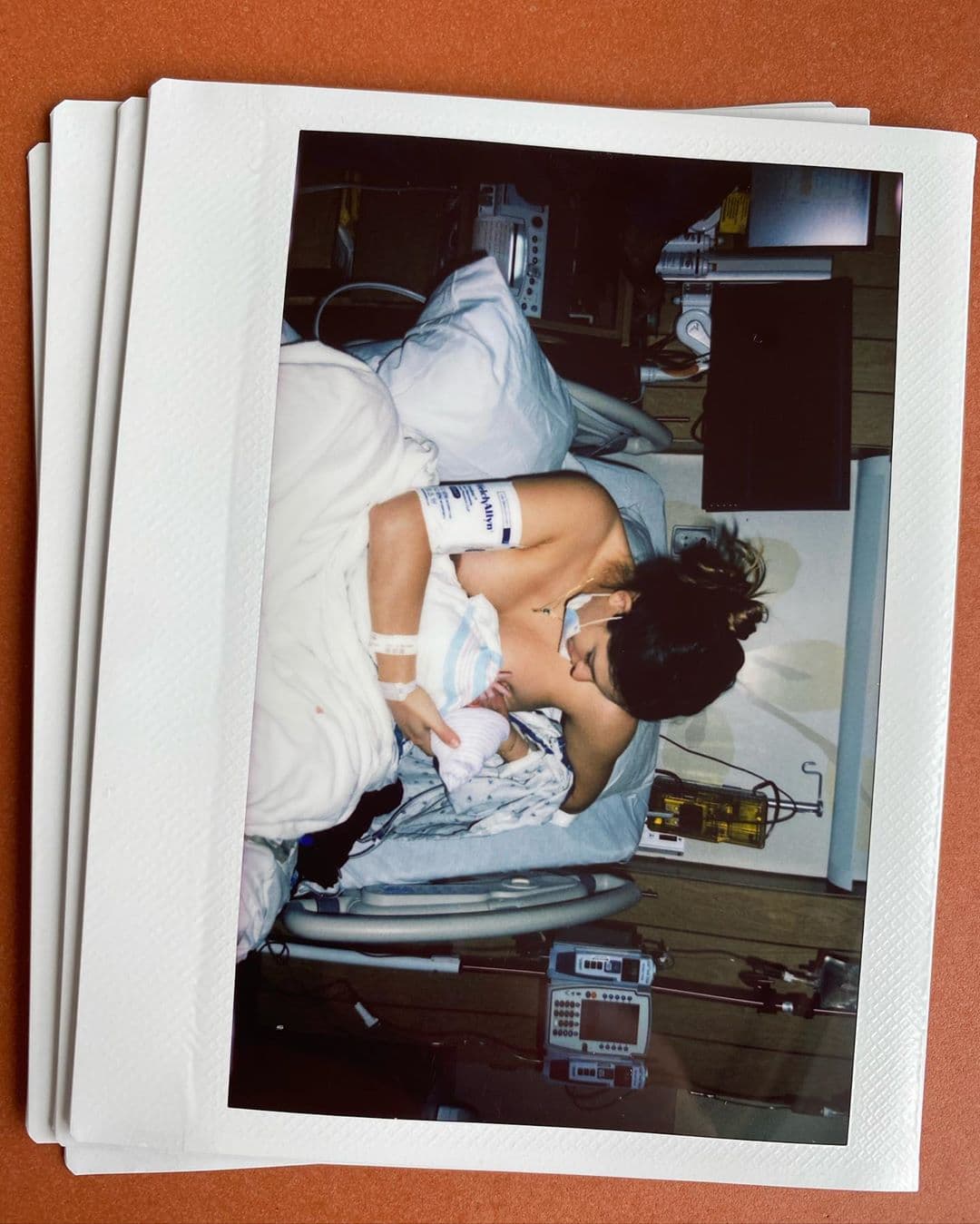 "Dando a luz a la pequeña Nala en estas polaroids desde el hospital", escribió la modelo.