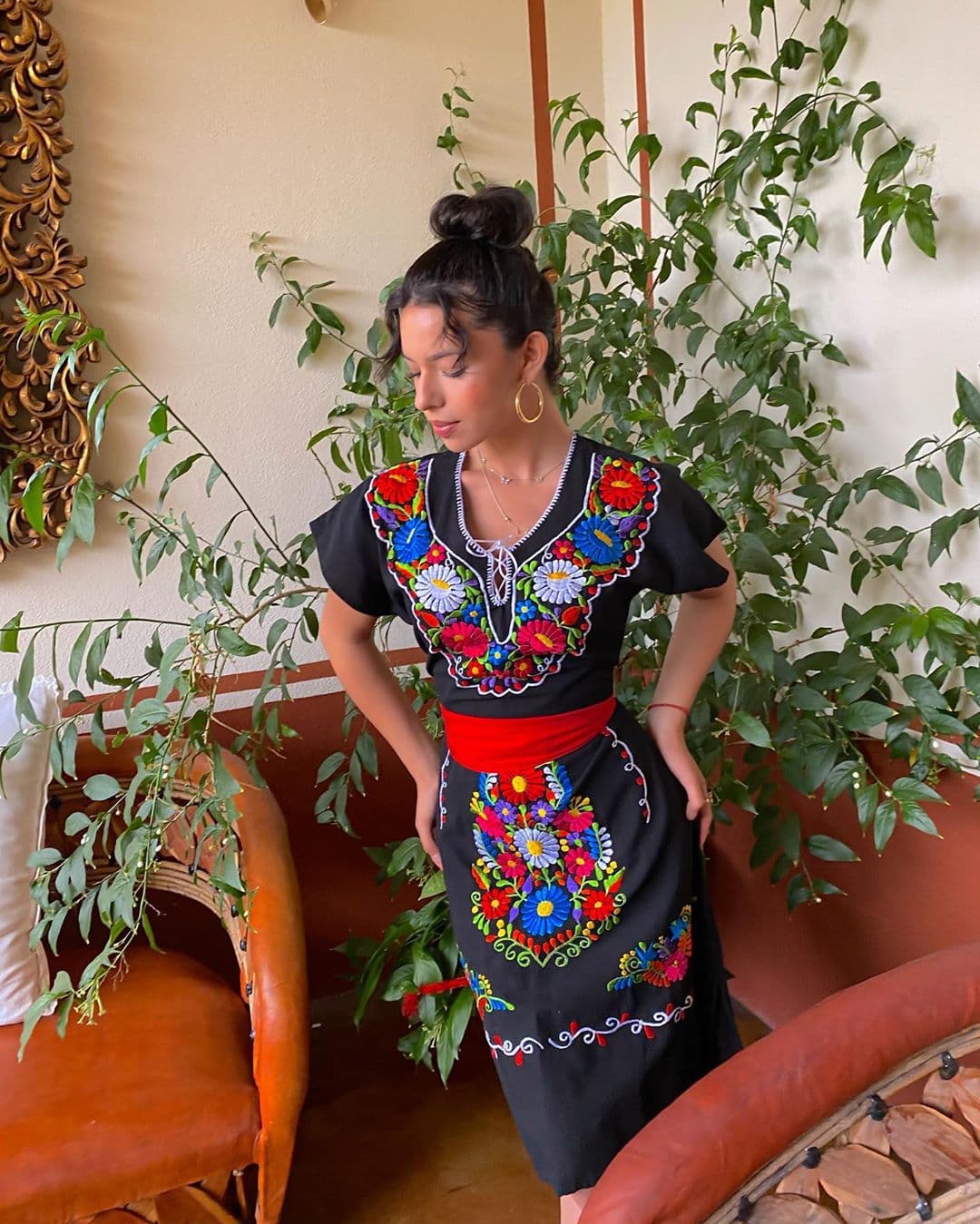 En una reciente publicación de Instagram, la joven cantante presumió un elegante look en el que se le vio con cabello recogido, dos grandes aretes y un vestido bordado de flores, típico de la indumentaria mexicana.
