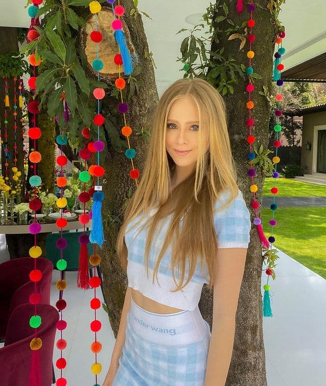 Para su reciente celebración de 17 años, la rubia intérprete lució un set de dos piezas en color azul cielo con cuadros blancos de la marca Alexander Wang, el cual supera los 20 mil pesos mexicanos.
