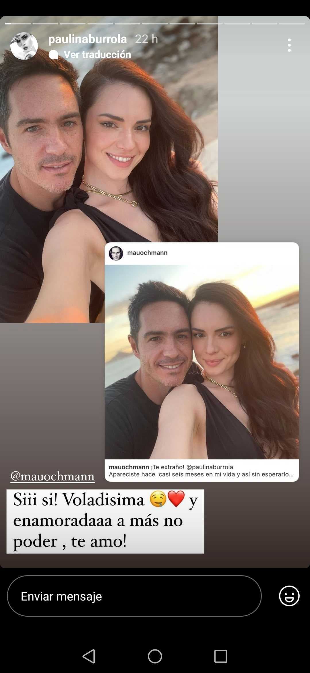 Ante la romántica dedicatoria de amor, Paulina Burrola respondió en redes sociales y no pudo más que admitir lo enamoradísima que está de Mauricio Ochmann. A través de una historia en su cuenta de Instagram, la reina de belleza enterneció a más de uno con su respuesta.