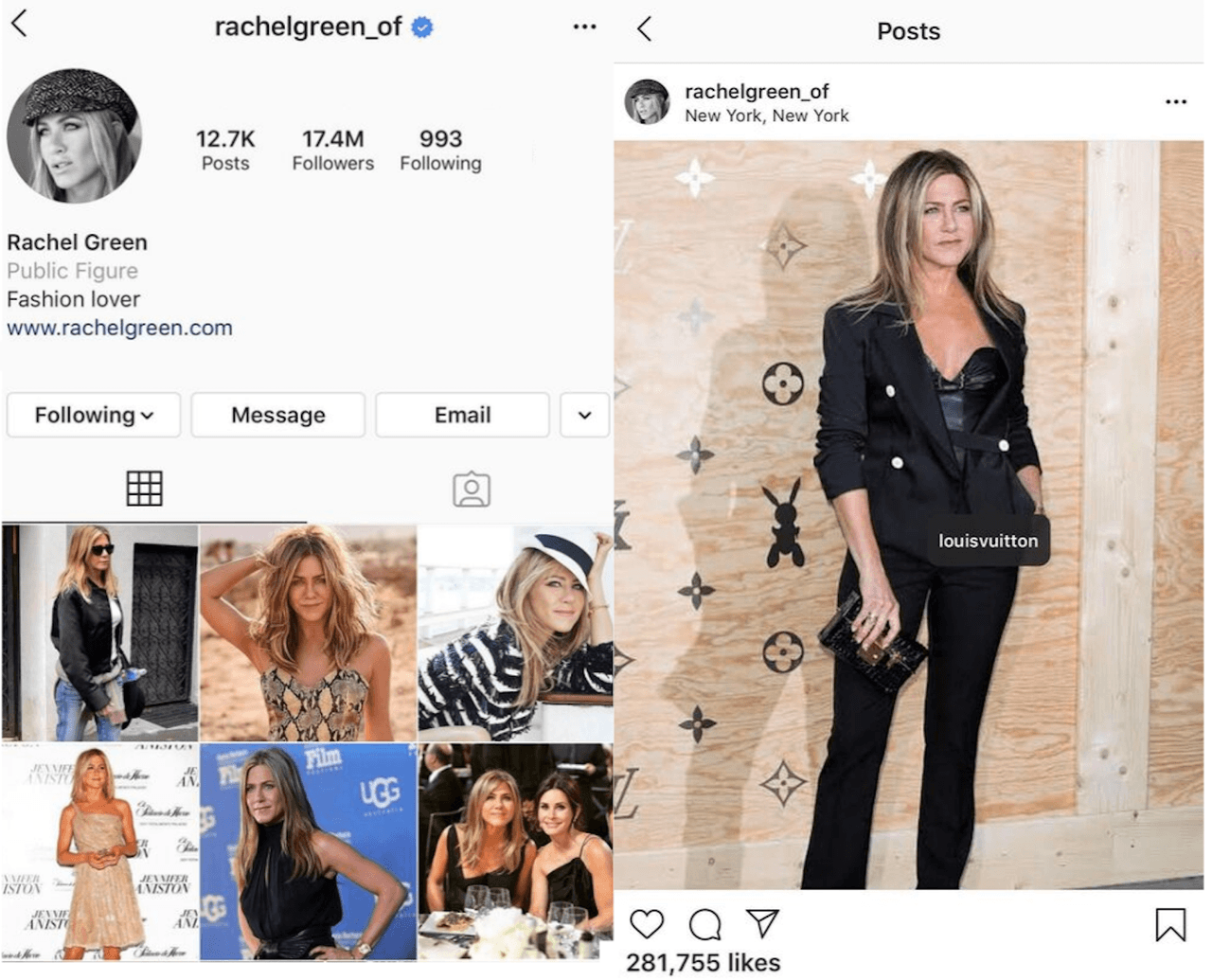 6. Rachel tendría un Instagram dedicado a la moda.