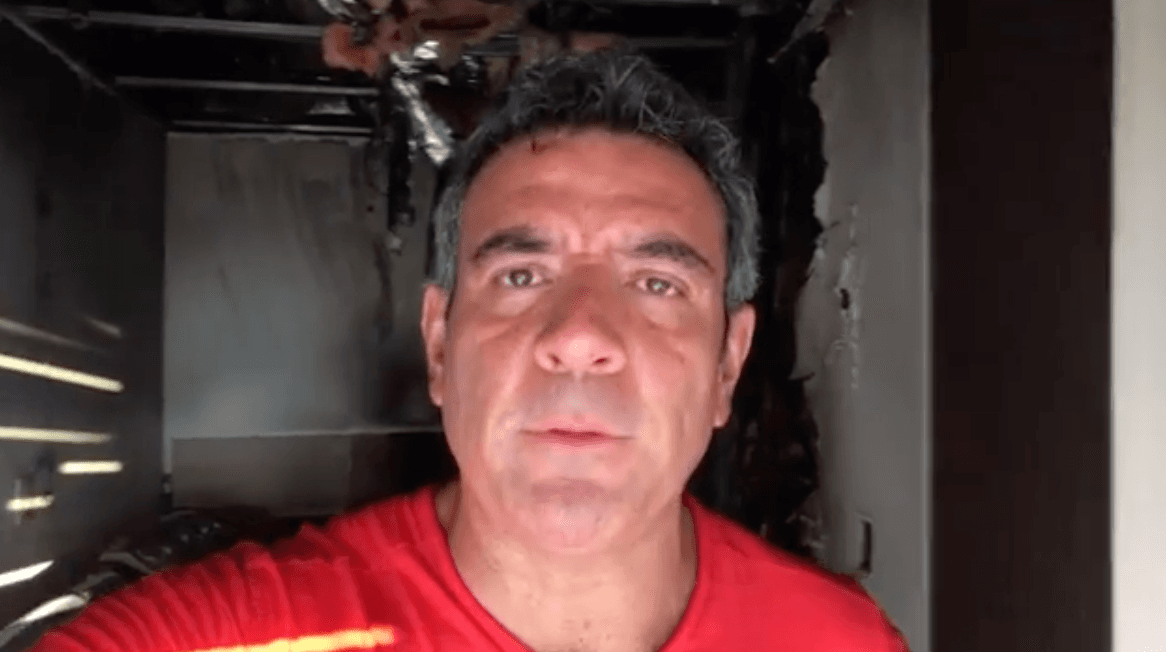 “ El departamento donde estábamos nosotros, desde hace varios días, se incendió. Estoy en la zona del cuarto de la lavandería, hubo un corto circuito en esta parte (…) el fuego llegó hasta la zona del techo y salió por estas rendijas que están acá que fue lo que indicó a los vecinos que estaba habiendo un incendio”, comentó el presentador.