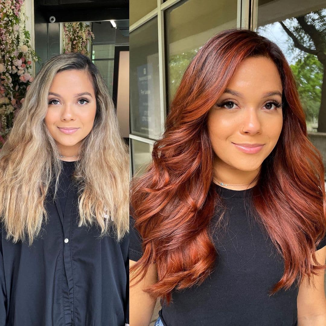 Para las castañas naturales, el tono rojo borgoña podría ser una gran elección de look pues es tan atrevido como favorecedor. Este tipo de color se distingue por ser un ahumado oscuro que no apaga la luminosidad del rostro, sino al contrario, aporta color y vida a la piel bronceada. Para este tipo de transformaciones, es vital un buen equipo de tratamientos de hidratación y reestructuración capilar, pues los tintes teñidos suelen maltratar el cabello, aunque nada que no se repare con un buen kit de mascarillas nutrientes.