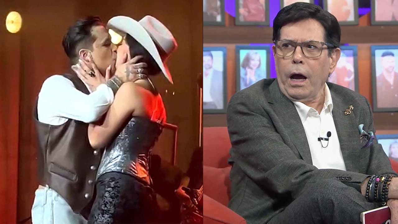 La conductora celebra el amor entre los cantantes, asegurando que él se ve muy enamorado, pero el comunicador no comparte la misma opinión.