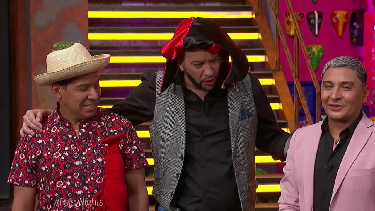 En la dinámica ‘A sentones’, Jorge Falcón, El Costeño, El Borrego, JJ y los conductores de ‘Faisy Nights’ se pelean por las sillas y el perdedor cuenta un chiste.