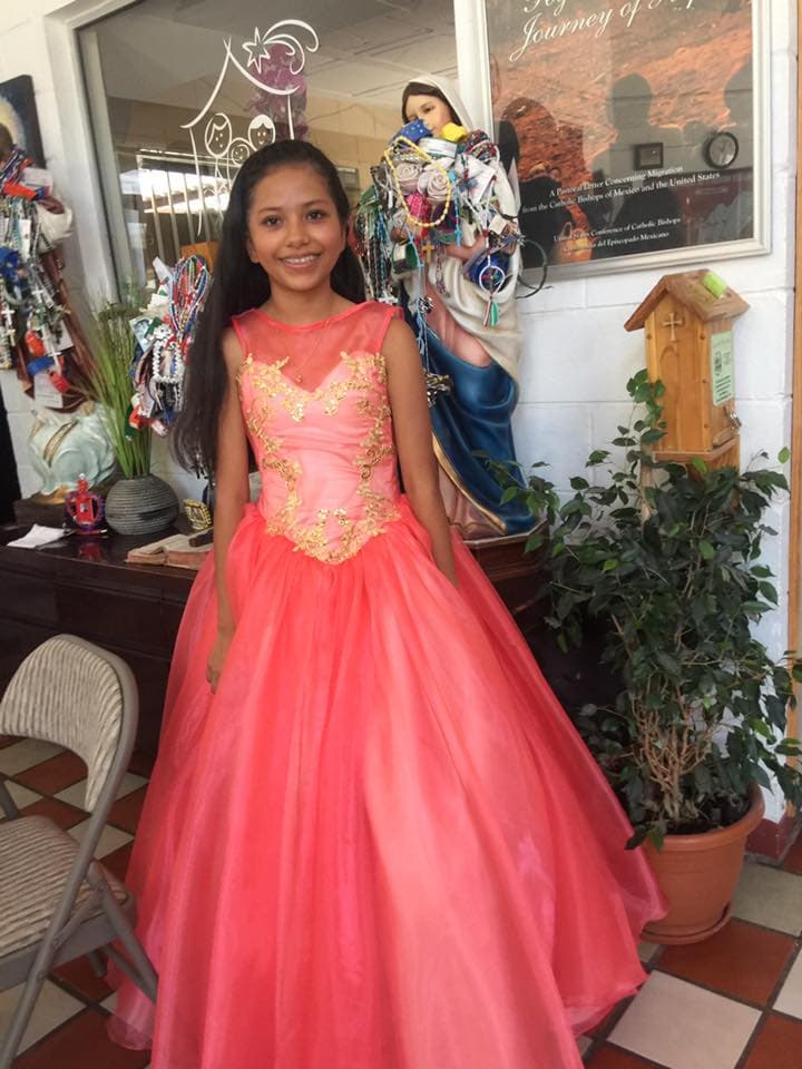 La tarde del domingo 23 de junio llegó a La Casa del Migrante de Cuidad Juárez, Chih. un vestido confeccionado por una benefactora del albergue, sorprendiendo a Melanie con su celebración de 15 años.