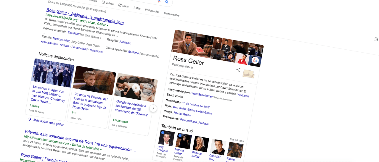 En medio del furor por el 25 aniversario de Friends (1994), Google le rindió homenaje a la serie a través de una sorpresa en su buscador, pues al escribir el nombre de cada uno de los personajes aparece una animación relacionada a ellos.